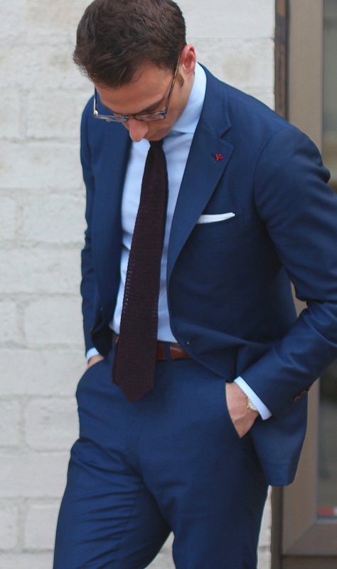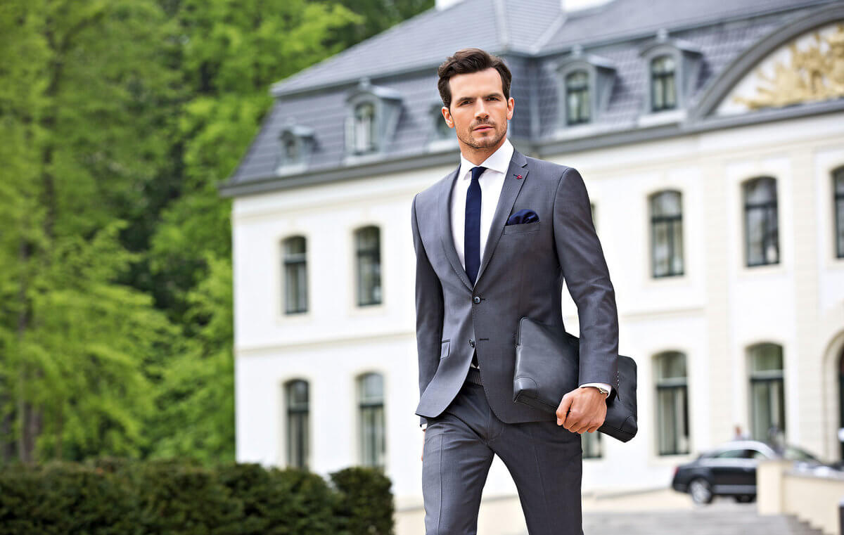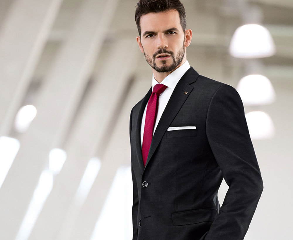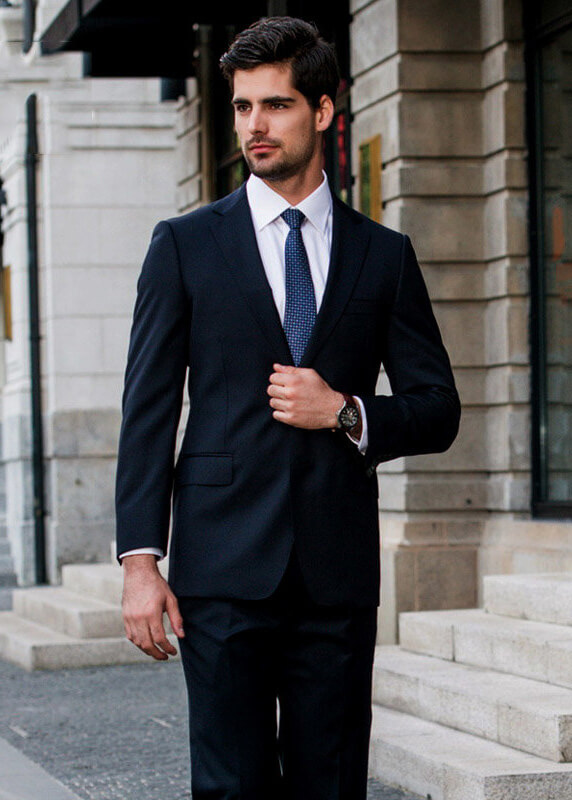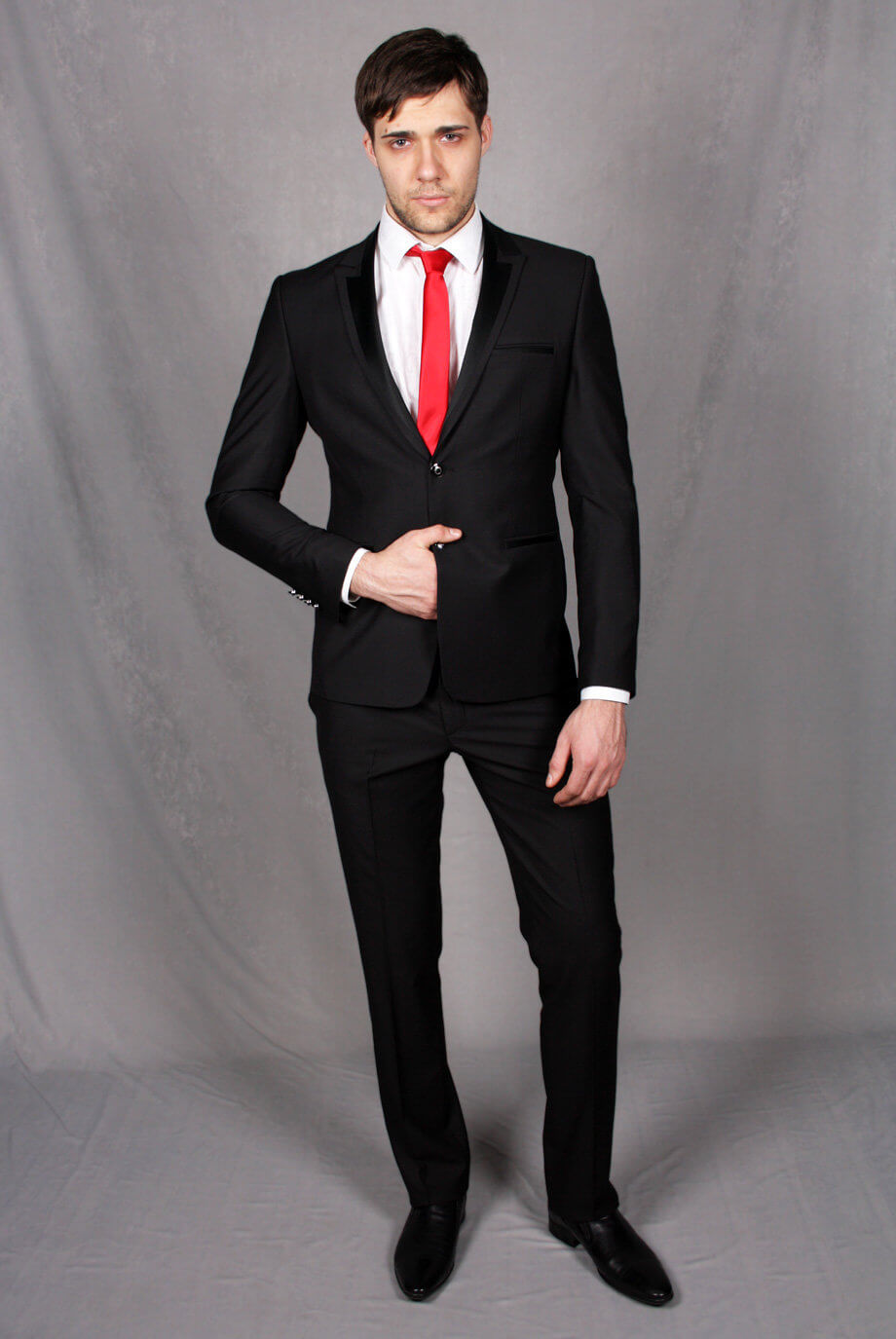 - Контрастный образ: костюм и галстук контрастных цветов, например, синий костюм и красный галстук. Белая рубашка обязательна.