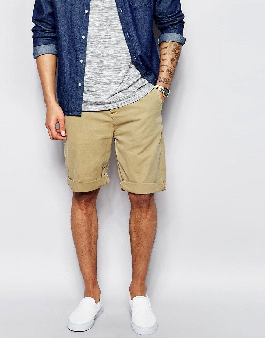 - Шорты хаки: Этот стиль обычно имеет оливковый или серый цвет и напоминает военную форму. Они идеальны для работы или путешествий, так как устойчивы к износу и загрязнениям.