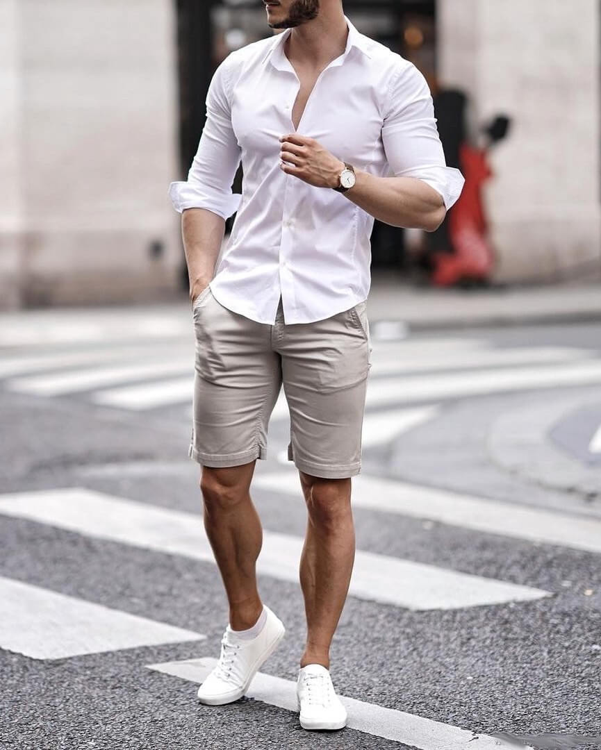 Классические мужские шорты можно носить с различными предметами одежды, в зависимости от стиля и случая. Вот несколько вариантов: